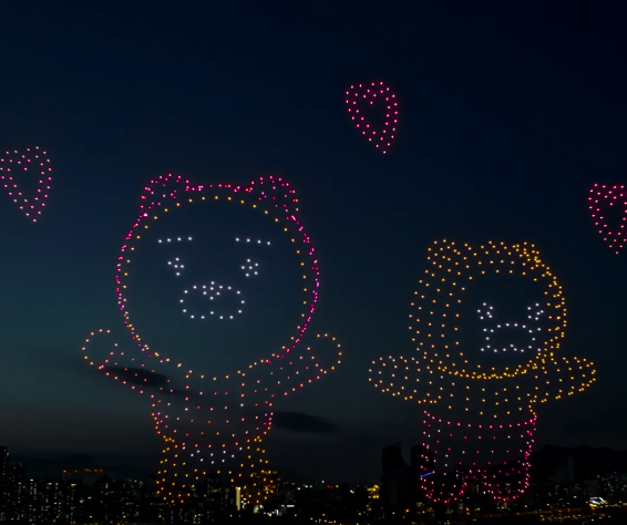 총 1200대~2000대 이상의 드론이 어린이날을 기념하는 테마 퍼포먼스를 선보입니다.