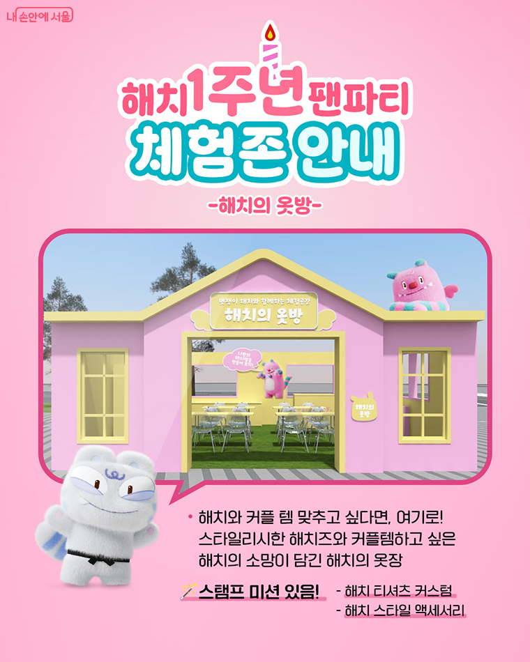 서울광장에서 해치의 집을 직접 체험해보세요! 1주년을 기념하는 특별한 시간, 해치와 함께 즐거운 하루 보내세요.